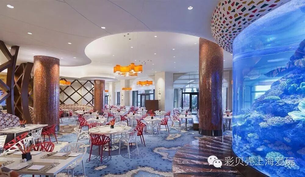 让全家都尽兴怎么能少了美味的食物,九间风格各异的餐厅和酒吧,提供中西各色美食满足全家不同口味。当你吃饭的时候也许海龟和小丑鱼会游到餐座前觊觎你美食的同时,给你跳跳舞助助兴,这里最好的“驻唱歌手”海豚先生就在餐厅外池边stand by,随时准备给你展示它的天籁之音。