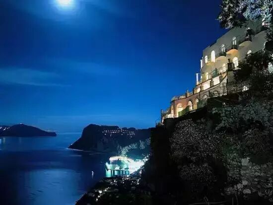 从酒店里放眼望去,附近群山的迷人景色尽在眼前。所有的客房都是以酒店周围的29个山峰命名,客房号也与山峰的高度一致。从套房外出去,你可以看到瑞士的最高峰——玫瑰峰,也可以看到瑞士与意大利的分界线——马特霍恩峰。8、峭壁上的奢华——凯撒奥古斯都饭店,意大利卡普里岛