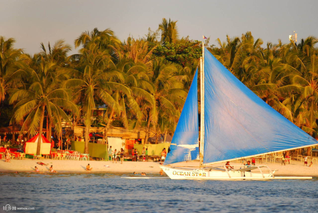 来长滩岛一定会体验“螃蟹船”,这种菲律宾独有的船前后长了两对伸出海面的“翅膀”,乘坐这样的帆船,一路鼓风前进,仿佛是一只在海上翱翔的大鸟。