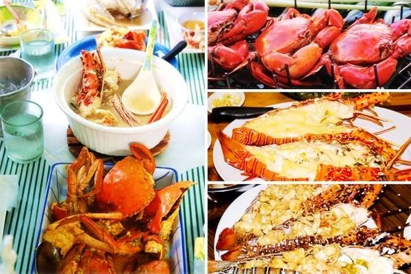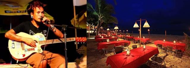 每到入夜,海滩上就摆出一溜海鲜和烧烤摊子。海鲜都很新鲜,也很便宜,新鲜的青蟹,用当地特制的辣椒酱炒,一只折合人民币不到100;串烧鱿鱼,每盘只需 人民币20;石斑鱼更是极便宜,二三十元便能买到一斤。