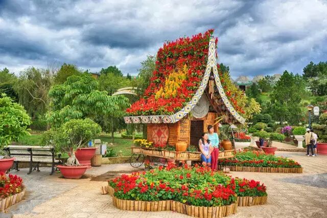 你若问我,出境游为什么要选择越南? 我只能说:因为便宜!因为美!因为情调!春香湖是大叻市中心的人工湖,环境幽雅,风光宜人。坐在湖边太阳伞下品一杯正宗的越南滴漏咖啡,看着街边的人来人往,湖中的波光粼粼,一定是一段难忘的体验。大叻火车站主色调是抢眼的橘红色,三个尖尖的屋顶和彩色玻璃彰显着古老的异国风情。你可以乘坐老式的火车,在半个世纪前的齿轨上行进,到8公里外的Trai Mat 村,观赏沿途的风光。疯狂房子是一家旅馆,它十分奇特,带着森林童话的味道。各种奇幻的想象在这里变成现实,你可以栖息在长颈鹿的肚子里,或者穿梭在一张巨大的蜘蛛往里。住一晚的价格也不贵,是非常有趣的体验。复古的法师别墅群,艳丽的大叻花卉园,清新的古老火车站,大叻的所有元素都充满了浪漫的怀旧情趣。在这些地方拍照,分分钟都是时尚大片!在大叻天主教堂,你可以看到欧洲中世纪教堂的身影,白天的时候,当阳光照耀,教堂内70多个法国制造的玻璃窗使室内光彩夺目。最后,你也可以去达坦拉瀑布来一场冒险,穿过原始森林,一路上欣赏迷人的雨林风光,点缀着说不清的花儿和蝴蝶。据说这里的滑轨比风光瀑布更好玩。这就是越南大叻,它是越南的花城,想要拍出好看照片的人可不要错过这里。色彩斑斓的建筑、蜿蜒起伏的街道、五颜六色的花朵,都是照片里最好的点缀。每日的黄昏时分,天空中会出现晚霞,这时候拍出的照片会非常梦幻。