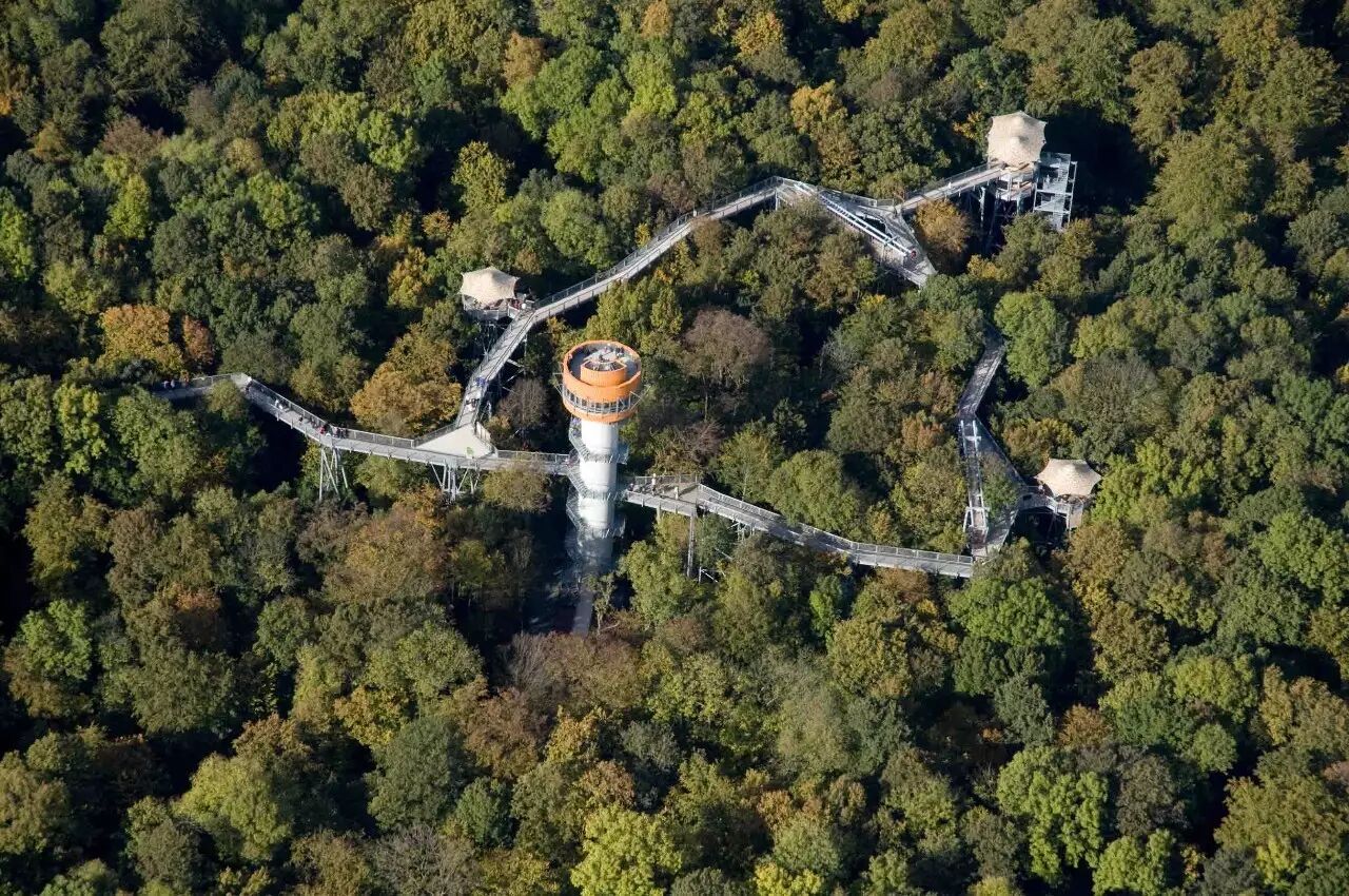 太美啦!德国海尼希国家公园坐落在Eichsfeld-Hainich-Werra河流域,如今,这里是欧洲最大的落叶混交林区,被称为“德国中部的原始森林”,同时它也是世界文化遗产瓦尔特堡地区的一部分。在树冠之路上行走是公园游览的一大特色,在44米高的森林之上可以体验地面上无法想象的景致——以森林为地面。这里还有个山猫村,其中的“山猫棚”还提供很多当地动植物的有趣的信息。