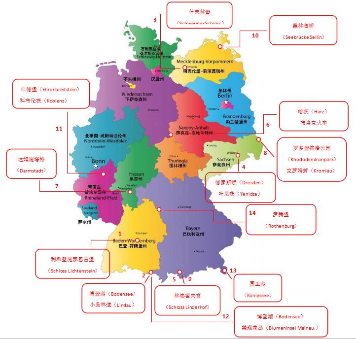 非常非常接近了!告诉你哦,这个是利希登施泰恩古堡(Schloss Lichtenstein),它雄冠于巴登符腾堡州的侯瑙山(Honau)之巅。就在旁边了啦~这条小巷坐落在博登湖(Bodensee)小岛“林道”(Insel Lindau)的古城区。淡定,看这座古堡可不用买很贵的门票哦,只要驱车前往什未林(Schwerin)围着那里转转就很容易见到。因为它,什未林堡(Schweriner Schloss)就耸立在该城的正中央,一目了然。不管你信不信,这座伊斯兰尖塔其实就在德累斯顿,它是原叶尼茨(Yenidze)卷烟厂的厂房,建于1908、1909年间。确实,它看起来很像法国路易十四(Ludwig XIV)时期的一座小型城堡 ,但其实是巴伐利亚州最南端的林德霍夫宫(Schloss Linderhof),由巴伐利亚国王路德维希二世(Ludwig II,著名的童话国王)建造,巧的是德语里的Ludwig既可以翻译成路易也可以翻译成路德维希,不清楚历史的话,还真有可能张冠李戴呢。在这辆火车里,其实你能遇到的,更多是麻瓜而不是法师。因为它是哈尔茨的布洛克火车,径直驶上德国北部最高的山岭,不过真想坐上去感受一下啊,感觉周边的美景完全不逊于电影之中呢。我们之前有详细介绍过这个美丽的地方,欲知详情可以点传送门:在哈尔茨山探寻女巫的足迹一点也不是吧,达姆施塔特(Darmstadt)有着这样五彩斑斓的建筑也不足为奇呀,她叫“树灵”,由著名建筑设计师弗利登莱希·百水(Friedenreich Hundertwasser)先生设计,不过谁叫它这么美呢,说它在达姆施塔特,巴塞罗那,还是意大利都不为过。偷懒,直接从魔戒电影里截的图吧?讲真,这可不是在中土世界,而是真实存在的呦。它非官方的说法叫“魔鬼桥”,官方的名字是“拉科茨桥”(Rakotzbrücke)。自1860年起就安然横卧在萨克森州克罗姆劳(Kromlau)的罗多登德隆公园(Rhododendronpark,拗口堪比齐得隆东墙)。憋猜了,不对,还是在我们的林德霍夫宫里区域里啊,这就是人们常说的的摩尔人凉亭(maurischer Kiosk),为巴伐利亚地区的阿尔卑斯群山环绕。哪里是,这不在大不列颠,而是在梅克伦堡-前波莫瑞州(Mecklenburg-Vorpommern),他叫塞林海桥(Seebrücke Sellin),你可以在吕根岛(Insel Rügen)的东南方找到它。夜晚看上去确实像是雅典卫城,然而却是在莱茵兰-普法尔茨州。它是仁德堡(Ehrenbreitstein)的要塞,于16世纪在科布伦茨(Koblenz)建立。又回到权力的游戏里边的维斯特洛花园了,在德国你就可以置身那个史诗世界。确切些是在博登湖,再确切些,在美瑙的“花岛”上(Blumeninsel Mainau)。为了此景,大可不必去一路向北开到挪威,深入德国的南部就好。那里,最东南部的贝希特斯加登国家公园(Berchtesgadener Land)内,找到瓦茨曼(Watzmann)山脚下的国王湖(der Königsee),据说它是德国最清澈的湖泊。你没有穿越,不是中世纪啦,是弗兰肯中部(Mittelfranken)陶伯河上的罗腾堡是也~