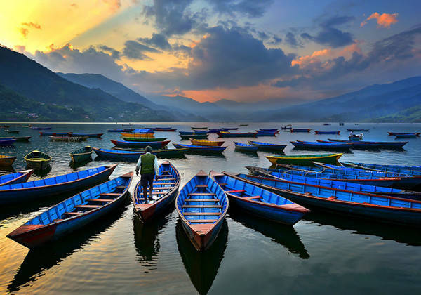 博卡拉Pokhara,海拔885米,尼泊尔最为盛名的风景地。与热闹喧嚣的加德满都比起来,这里要恬静很多,特别是博卡拉处于喜马拉雅山谷地,依偎在终年积雪的安娜普纳山峰和鱼尾峰下,傍着迷人的佩瓦湖Fewa Lake,苍翠繁茂的植被和壮丽的雪山风光形成强烈对比……