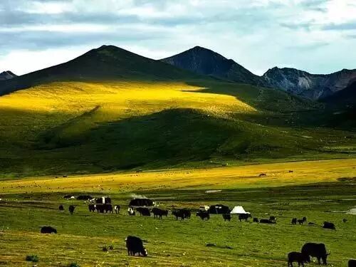 tips:特别提醒在草原上拍摄会遇到很多不定因素,有时在空旷的草原会突然过来大群的牛羊,一定要注意安全。草原上随时都可能遇见牧民的帐篷,而藏族牧民也非常地好客,对拍照也很配合,只是走近帐篷时 要先叫牧民将凶猛的牧羊犬拴住,以免发生危险。