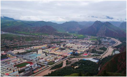 站在民族和谐塔前面,这里是卓尔山最高点,是俯瞰卓尔山下祁连县城的最佳地方。