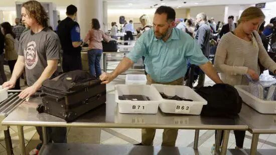 5.手提电脑、数码相机和摄像机等大的电子设备必须单独取出接受扫描检查。