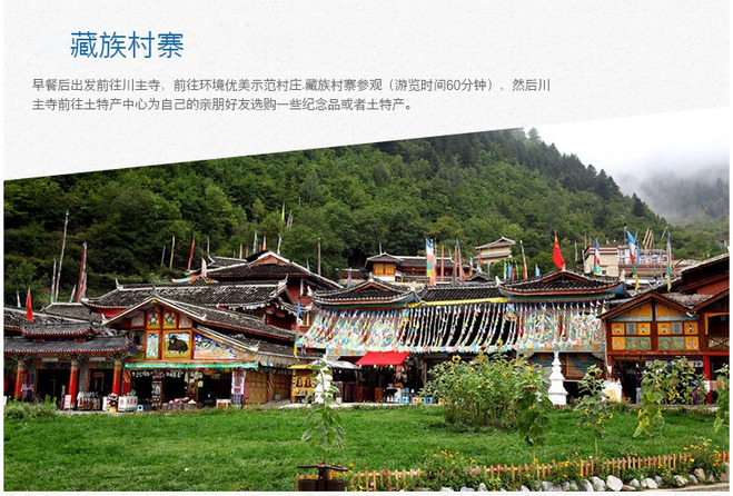 九寨藏羌文化之旅,看藏羌文化晚会,吃藏式餐,观藏式建筑,藏式风情街,让你除了对九寨风景留念往返外,对藏族和羌族生活,文化,风俗习惯有一个全面了解和感受。