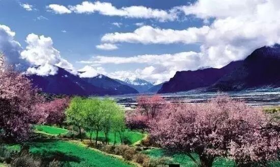西藏林芝“桃花沟”,三面环山,高处有水源,四周林木葱郁,拥有一片天然野生桃林。每年的四月,寒意未尽,远方的雪峰白雪皑皑,