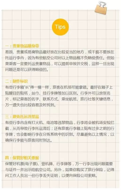 若担心行李遗失,建议事先办理申报行李价值,并支付额外费用,这样就可以按物品的价值和折旧率来赔偿,否则将按普通托运行李赔偿。