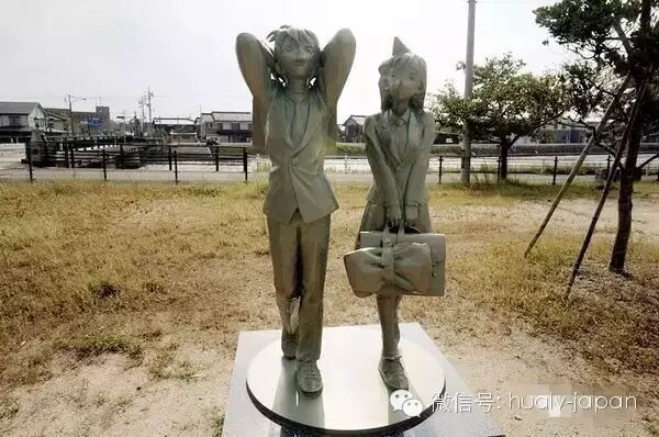 走过柯南大桥,就能看到新兰的雕像,一起放学回家的新一和小兰,画面太美。