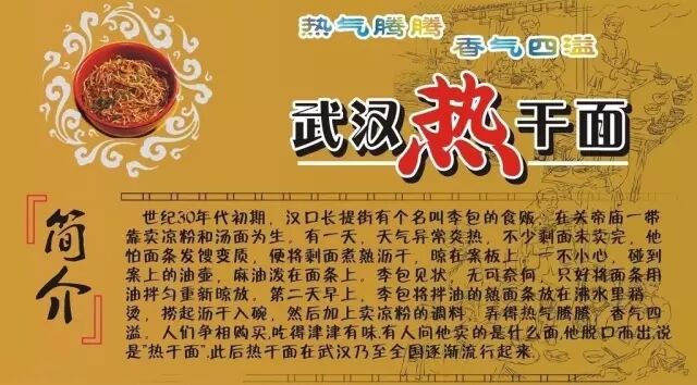 热干面是湖北省武汉市的汉族特色小吃,原本是武汉的特色美食,在湖北很多地方都十分受欢迎。随着湖北人在其他省市地人口增多,武汉热干面也在许多地方都能见到,是诸多人喜欢的面食之一。热干面的面条纤细根根有筋力,色泽黄而油润,滋味鲜美。拌以香油、芝麻酱、鲜辣味粉、五香酱菜等配料,色香味俱全。武汉热干面可谓享誉全国,乃至享誉世界。