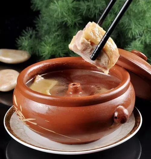 中国人很会吃鸡。广东的盐鸡,四川的怪味鸡,常熟的叫花鸡……。如果全国各种做法的鸡来一次大奖赛,哪一种鸡该拿金牌?我以为应该是昆明的汽锅鸡。汽锅鸡滇中特色名菜,由于汤汁是蒸汽凝成,鸡肉的鲜味在蒸的过程中丧失较少,蒸出的鸡肉骨肉分离,汤鲜肉嫩,所以基本上保持了鸡的原汁原味。又因为其器皿特别,外形古朴,构造独特,肚膛扁圆,正中立有一根空心管,蒸汽沿此管进入锅膛,经过汽锅盖冷却后变成水滴入锅内,成为鸡汤,所以称其为:汽锅鸡。“鲜香嫩口,原汁原味。”形容的就是汽锅鸡。