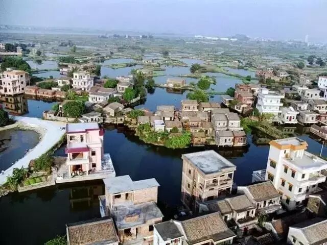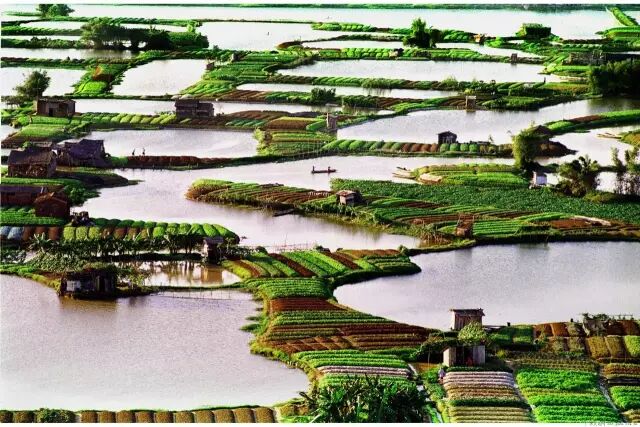 那一口口的鱼塘,一条条的“围墩”,以及状如蜘蛛网一样密密麻麻的大小河涌,构成了一幅幅如诗如画的美景,简直使人着迷、沉醉。