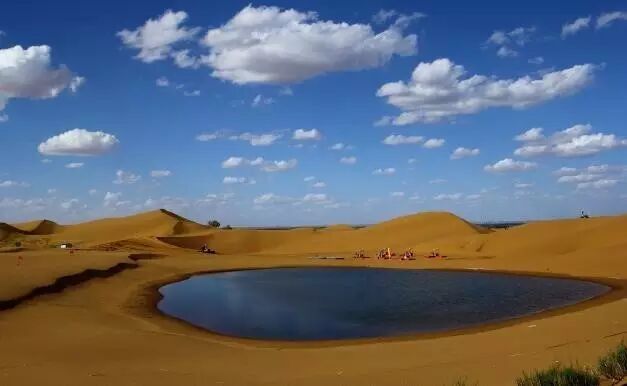一望无际的沙海里,映月湖和沙相互依偎