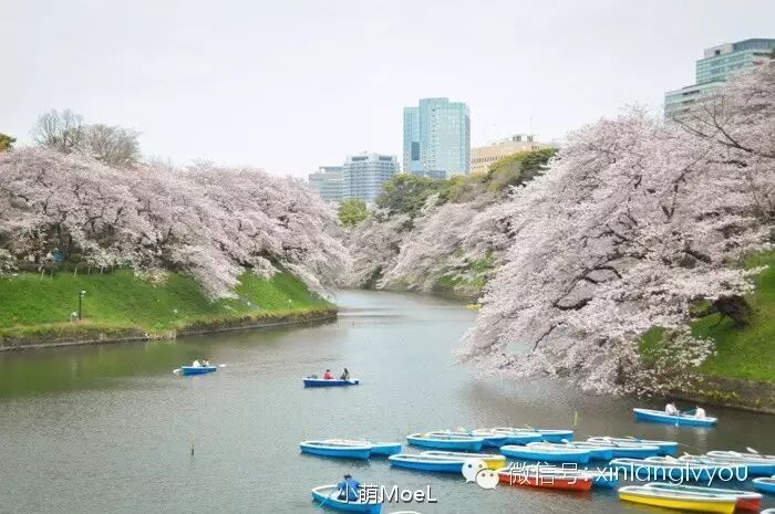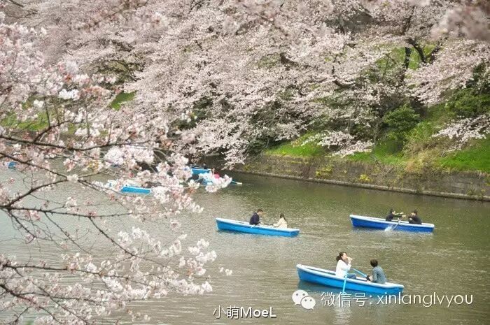 给我留下特别深刻印象的还是靠着皇居的“千鸟之渊”的樱花。那里没有上野和新宿那么吵杂,而樱树又格外的壮观。粉白色的樱树,每一株都将花枝极力伸展,一看就生长得颇有年头。再连绵成片,很是壮观。而且一路漫步下来,秩序井然、也不吵杂,可以在樱树下坐下来吃便当的地儿也有限,所以整体来说饱足了眼福。