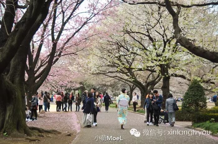 不过,我最喜欢新宿御苑后面的那些樱树。像整个樱花交叉而织的空间,面前都是一些比自己年龄还要大的樱花树。只不过御苑关门时间早,4点半时就听到广播让大家尽早离开了。
