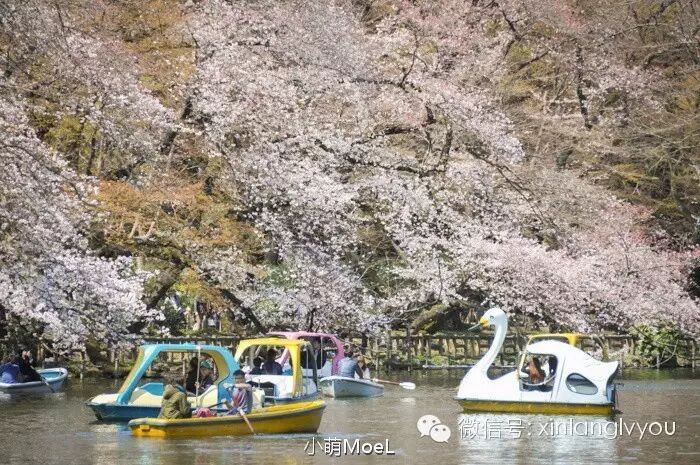 “井之头”一直是东京都内有名的公园:春有樱花、秋有红叶、夏有绿荫成林。在湖中划着鸭形船,在樱花包围中赏花泛舟,当真乐事。而且公园占地颇具规模,明明是平日,但来野餐的人却不少。尝一口樱花冰淇淋,看眼前樱花垂入水中,悠然漫步,很是美好。