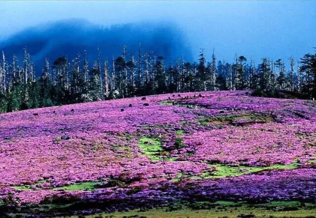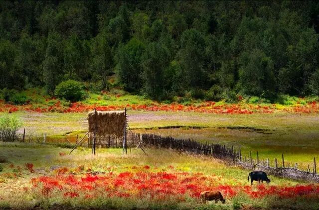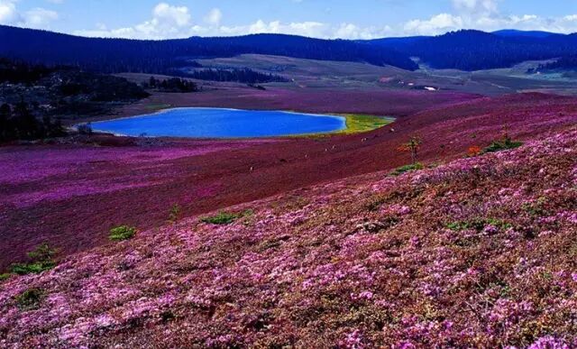 小中甸是丽江前往香格里拉必经的一个小镇,地处高寒坝区,有着大片的茂盛草场。而每月5月下旬到6月中旬,这里则成了一片花的海洋