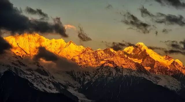 滇藏界山,藏传佛教四大神山之一,平均海拔在6000米以上,称为“太子十三峰”。著名的“日照金山”绝景