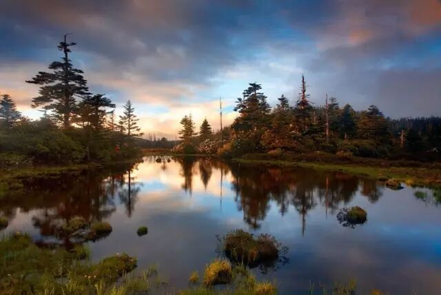 一个美丽而神秘的湖泊,在四周山群围绕之下安宁的存在