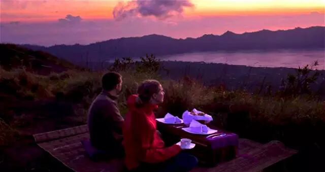 也可以在火山口享用早餐,伴随咖啡的醇厚香气和热烘烘的面包,看第一道曙光洒向大地。