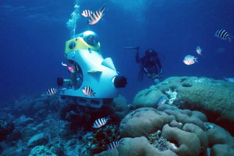 想去深海和五彩缤纷的海底世界来一次亲密接触,在别处,你也许需要一张潜水执照,然后背上重重的氧气罐,但是在毛里求斯,你只需要一台有换气系统的摩托车。它是你在海底的伙伴,带你领略瑰丽的海底世界。虽然水下摩托车跑得不快,但也正好给了和那些可爱的小生物们近距离接触的机会。从此,你可以骄傲的告诉大家,你在海底“自驾”过!