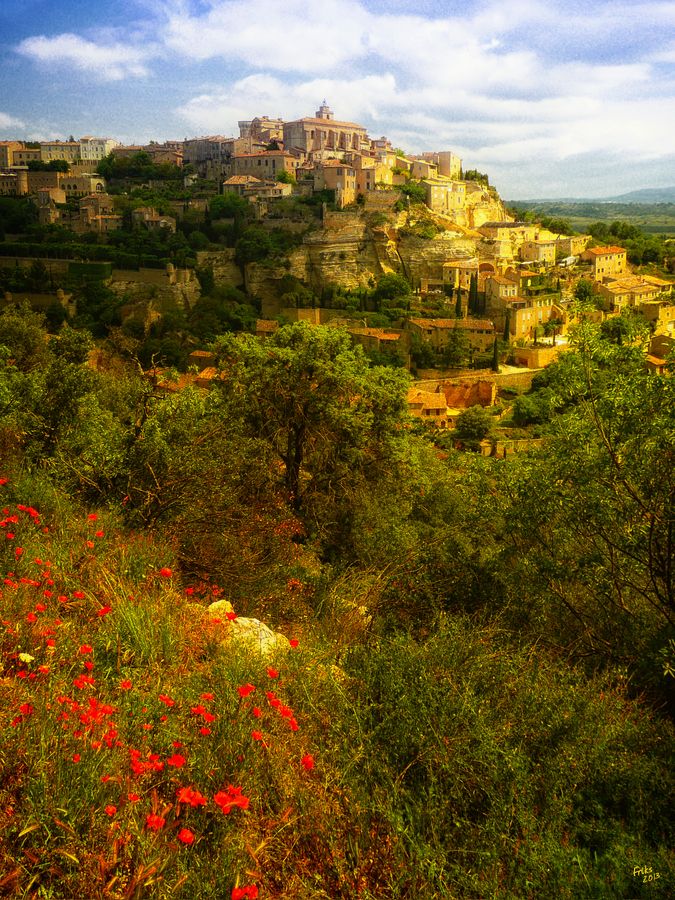 石头城(Gordes)地处丘陵地带,梯田山丘,道路平坦,呈现和蔚蓝海岸完全不同的田园风貌。它矗立于Vaucluse高地边缘,是最时髦的一座小镇,许多电影明星及艺术家在此安家。白色和灰色石头搭建的房子依照螺旋型建在一整块巨石上。特殊的地理位置,独特的建筑方式,魔法般的魅力,让它成为全法国最美丽的小镇之一。