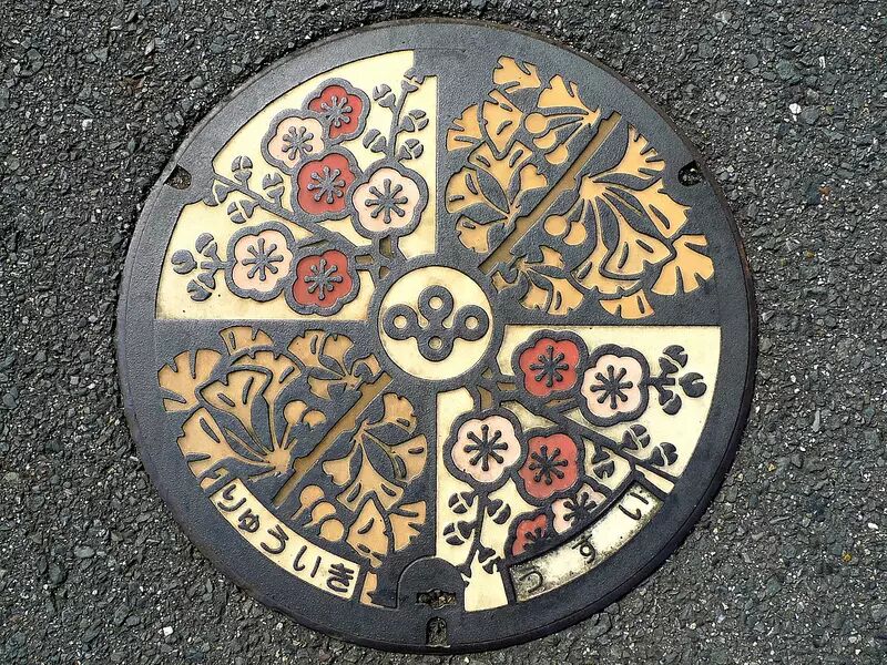 据说在日本,1780个自治市里,就有95%的城市采用了设计独特的井盖。其中约一半以上都是采用植物、树木、官方花卉作为图案,另外,动物、鸟,以及名胜美景、历史故事也常被作为设计题材。
