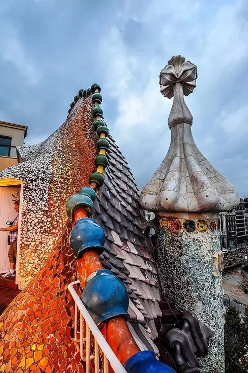 巴特罗之家最特别的地方在于它的色彩,整栋建筑的外墙由蓝色和绿色的陶瓷装饰,内部天井亦如同海洋一般,以及屋顶上的三维十字架和奇妙的烟囱,这座建筑处处都是惊奇。