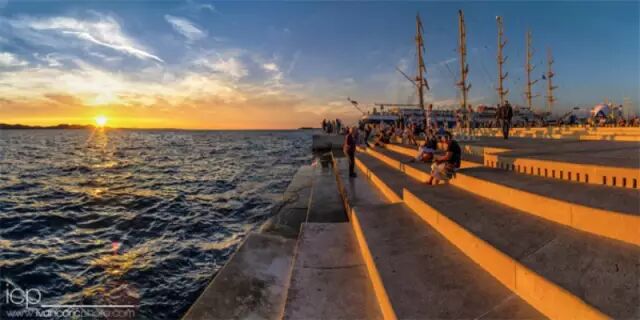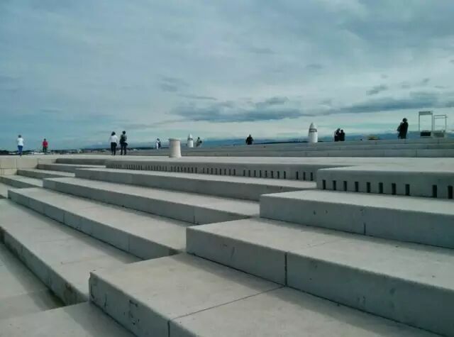 原来,这是一架经过精心设计的海浪管风琴,白色石阶下暗藏35个大型风琴管,大海就是风箱。海水拍打和潮汐涨落会在风琴管中自动形成气压变化,美妙的乐声也随之产生。很多游客专程来扎达尔听大海的演奏,甚至选择在这里举办婚礼。