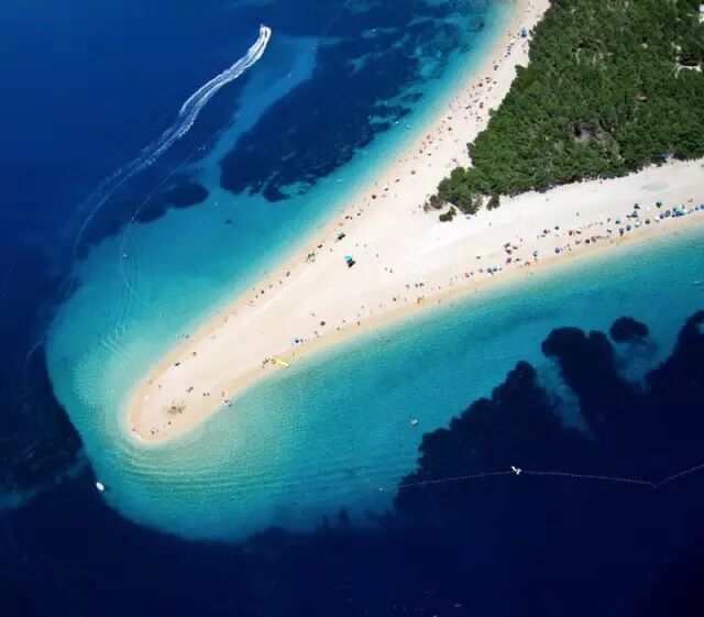 尖角海滩,位于克罗地亚南部布拉奇岛南岸,是一个深入海中634米的狭长海滩。被海环绕的纤长形状刷新了你对海滩的体验。