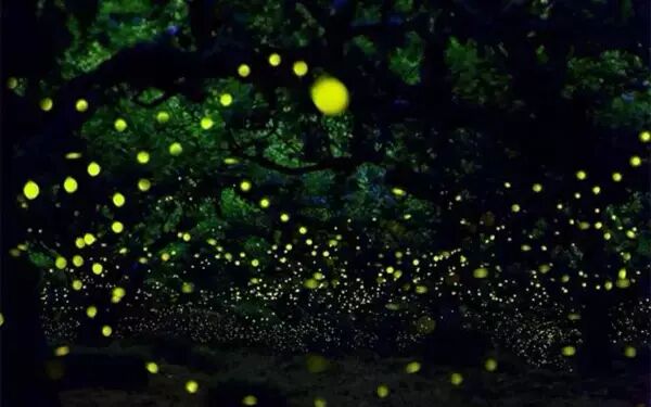这种萤火虫叫作马来微萤火虫,它们会停在密生于河川两岸的红树林叶片上,并且频率一致的同时明灭。在两岸的地表上,则有幼虫一起发光。如果有障碍物时,光的传递方式就会产生许多变化。由于这种景象非常罕见,因而被称为世界自然奇观之一。