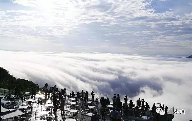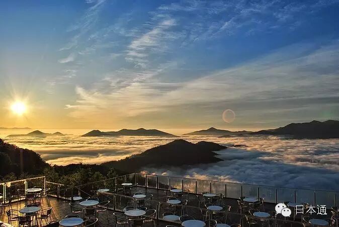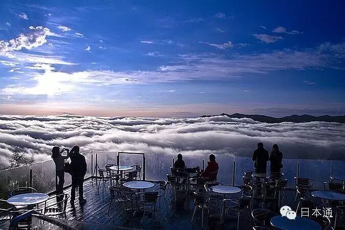 云海展望台(云海テラス)被称为「如置身天国的咖啡厅」,位于北海道海拔1000公尺高山上的北海道星野渡假村内。由于其特殊地理环,容易形成壮观的云海,不但有最接近天国的咖啡厅的美称,更曾被日本媒体选为日本50个代表性绝美风景之一。在这里,能让客人一边品尝咖啡,一边360度观赏被云海所包围的景色,犹如置身于天国喝咖啡。