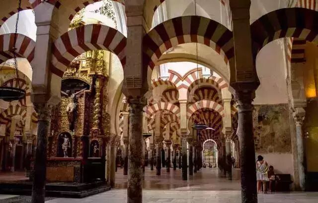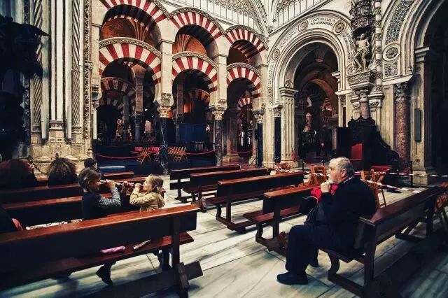 漫步在圣克鲁兹的旧犹太区,时光仿佛在这里停滞了,狭小的广场,富丽堂皇的房子,开满鲜花铁艺栏杆的阳台,诠释了塞维利亚的特点。沿着河岸,眺望斗牛场、旧城的教堂塔楼还有古时的灯塔…马德里的火车站,我们遇到一个三代移民的华裔小伙子,攀谈之下他的意思是如果你不曾去过科尔多瓦,那就不算来过西班牙。公元785年之前,这里还是罗马人神庙遗址上扩建的一个天主修道院,阿拉伯人来到之后,科尔多瓦的基督徒们被改造扩建成一个美轮美奂的清真寺,在随后的几个世纪里,每一个统治者都会在清真寺上加上自己的一部分。我们从它的名字Metzquita Catedral,(两个词在西班牙语中分别代表清真寺、教堂的意思)就可以发现,它是一座教堂和清真寺的结合体。这座独特的建筑同时还沿用了来自古罗马废墟的近千根石柱,在融合了多个种族不同建筑风格之后,变成西班牙历史变迁的最好见证。
