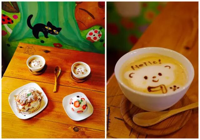 这家店最大的特点就是墙壁,墙上画满了童话世界里的森林和动物,让人仿佛身临绘本之中一样。