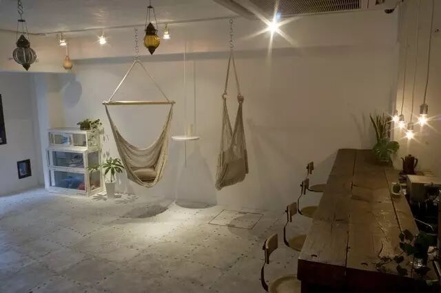 位于吉祥寺车站公园口附近(地址:東京都武蔵野市吉祥寺南町2-8-1 サンパレス1F),安静小路上的吊床Café。就连在外面排队时也有吊床可以坐,让等待的时间也变得有趣和轻松。