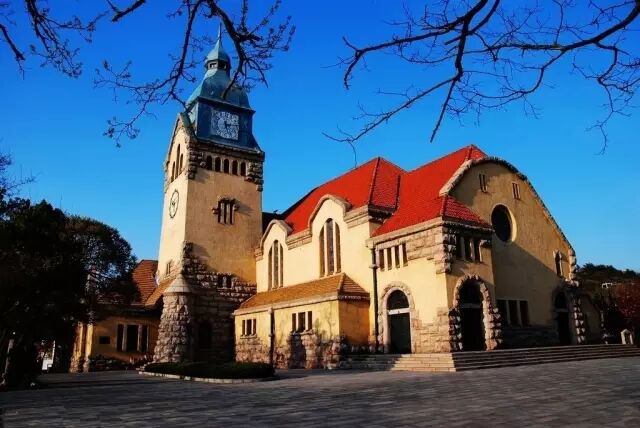 青岛是中国最文艺的城市之一,万里晴空环绕之下的教堂,别有一番异国风情。