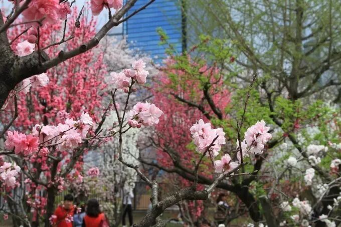 樱花花期早,先叶开放,着花繁密,花色粉红