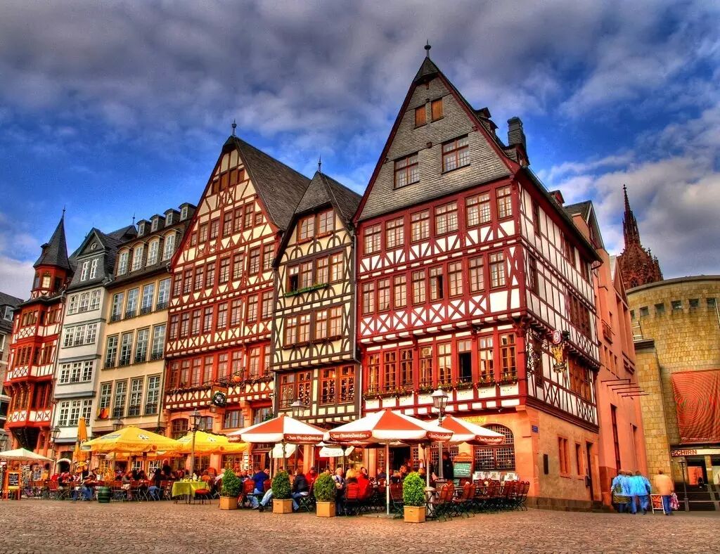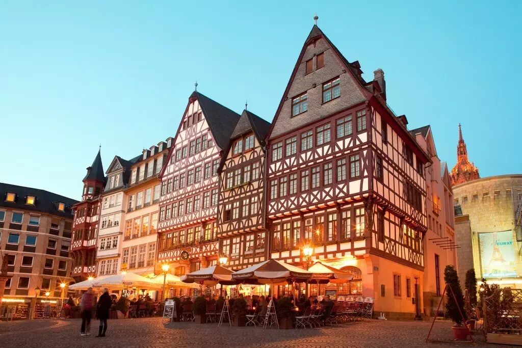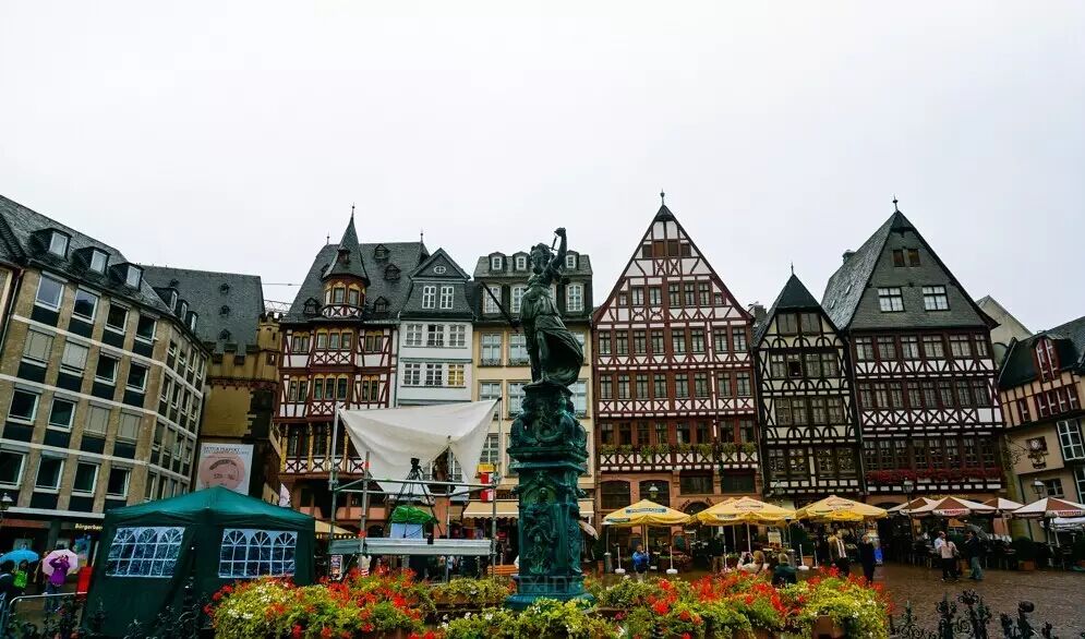 德国法兰克福罗马广场,修建年代是欧洲中世纪时期,位于法兰克福老城的中心,缅因河铁桥以北,西侧为市政厅,东面200米外就是该市的发源地法兰克福大教堂。德国最重要的城市广场。每年圣诞节期间,此处也是法兰克福圣诞市场的所在地。