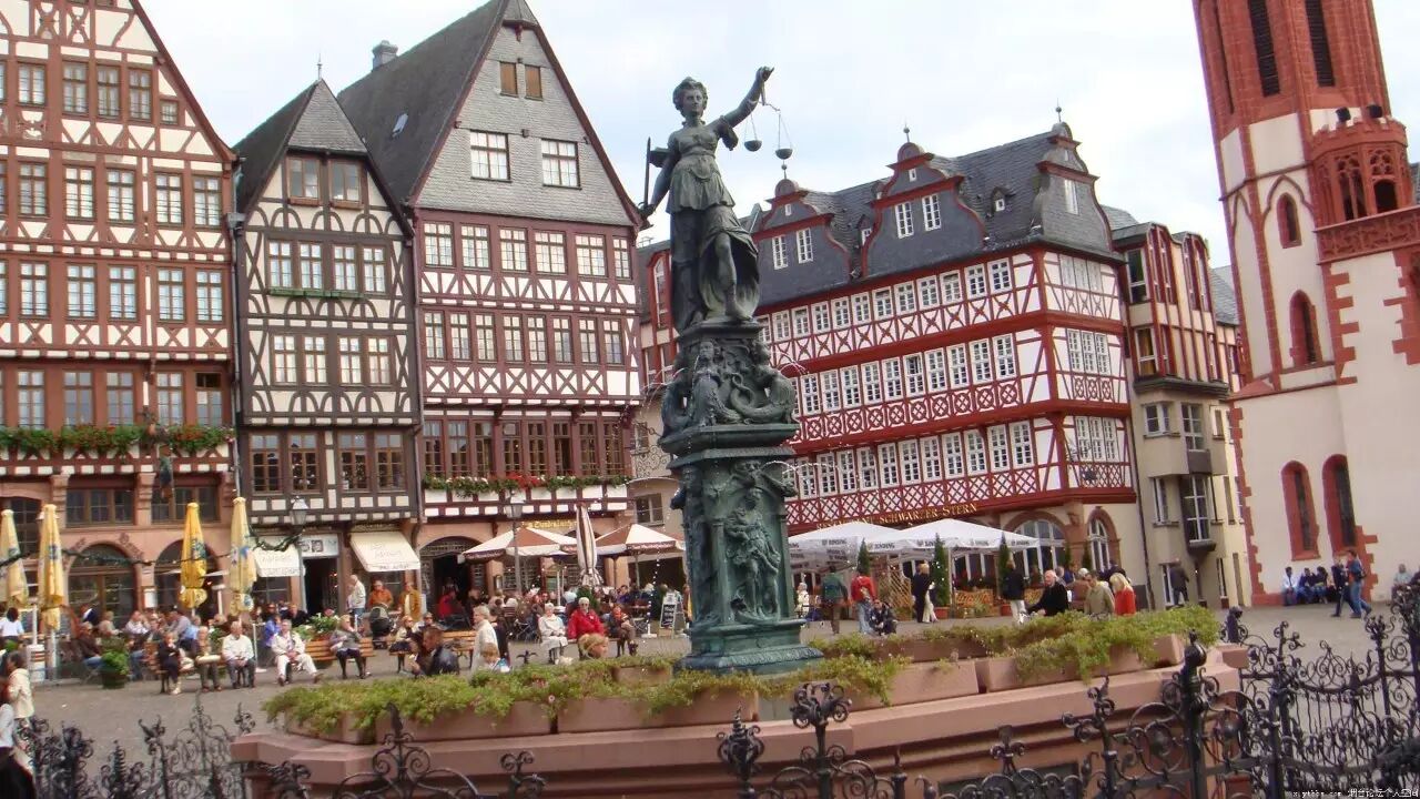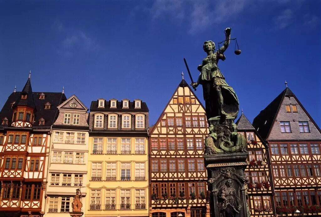 据说第二次世界大战以前,法兰克福有许多这样的漂亮建筑。如今的法兰克福到处洋溢着现代气息,但人们希望至少在旧街区的中心,雷玛广场一带仍能保留一些昔日的风貌,于是二战后,那些漂亮的古老建筑得以重建和保存。这其中以举行过神圣罗马帝国皇帝的选举、加冕典礼的大教堂为首,还有旧市政厅、尼古拉教堂,以及正义女神像喷泉。夏天,这里成为“缅因河之夏”的节日广场;冬天,在圣诞节前四周,又有圣诞购物市场在这里举办。