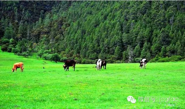 从石卡财神山山顶往下看,整个牧场就像一块镶嵌在森林中的翡翠。七、八月草甸长满了叶似蕉叶“酥油花”,与周围形态优美的柳树群形成完美的组合,给亚拉青波牧场增添了无限诗意。这片牧场因草质好,耗牛产出的酥油和奶渣品质优良而远近闻名。