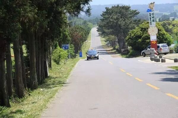 此外,享有盛名的”神奇之路“就在济州岛上,这条看似是上坡的路,但是放在路面上的空瓶空罐都会沿着上坡方向迅速滑动,拉开手闸的汽车也会自动沿上坡行进。令人无法相信自己的眼睛。