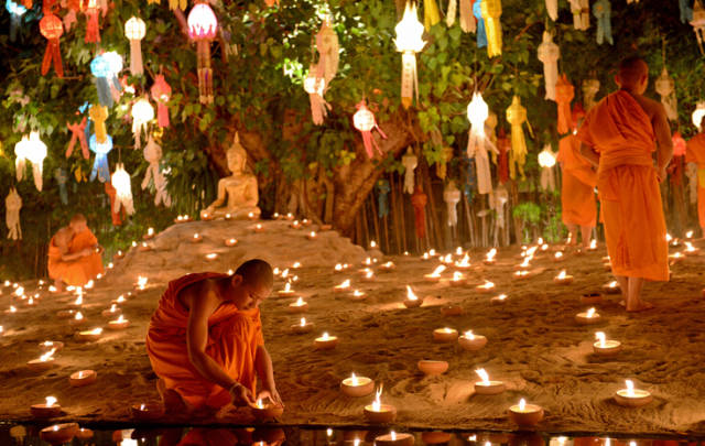 是重要的佛教节日,玉佛寺会举行隆重的玉佛更衣仪式,一般由国王或御代表主持。这一天即表示泰国已进入盛雨季节,僧侣进人为期3个月的坐禅、颂经期,期间和尚除早上外出布施化缘外,其它时间一律不得随意走出寺庙,膳食只能早晚两餐,晚餐只能吃流食。