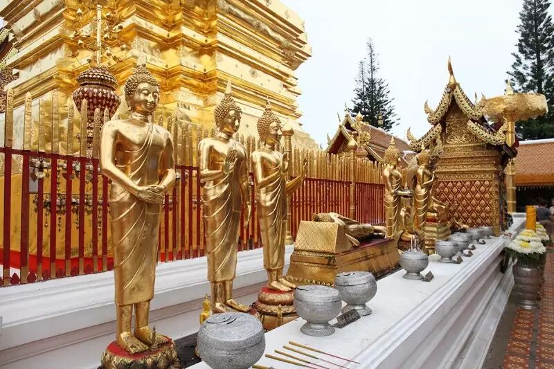 素贴山,泰国的佛教避暑胜地,双龙寺位于素贴山的山顶,寺内香火旺盛,金碧辉煌,寺庙后的观台还可以远眺清迈全景,将清迈美好的一切尽收眼底。