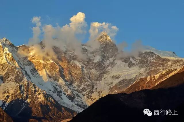备注:南迦巴瓦在藏浯中有多种解释,一为“雷电如火燃烧”,一为“直刺天空的长矛',还有一为“天山掉下来的石头”。