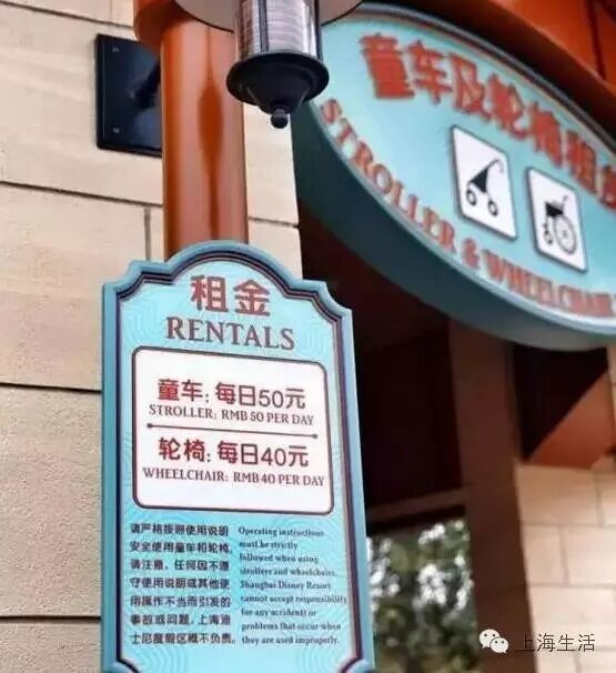 上海迪士尼度假区还提供手动轮椅租赁服务,不可提前预约,先到先得,额满即止。游客进入上海迪士尼乐园主入口处的闸机后,即可看到轮椅租赁点,每部每天的租金为40元。