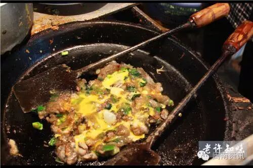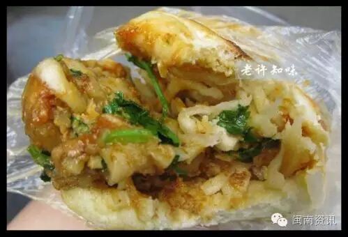 不同于台湾的海蛎煎。是由生地瓜粉伴海蛎和葱煎制而成,快熟时导入鸡蛋。这个功力要相当高,稍有不慎就会导致粉成块不化,或者海蛎不熟。味道是相当的好。老板可是在这一行干了一辈子辣!