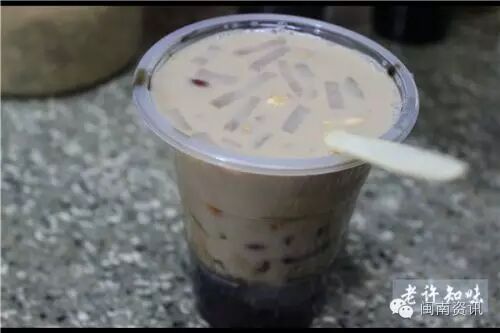 烧仙草是清热解毒良品,刚刚吃辣那么多的油炸食物,再吃烧仙草可以清热防上火。5元一杯下面是烧仙草,上面可以加奶茶或蜂蜜,配料有蒟蒻,红豆,花生等。