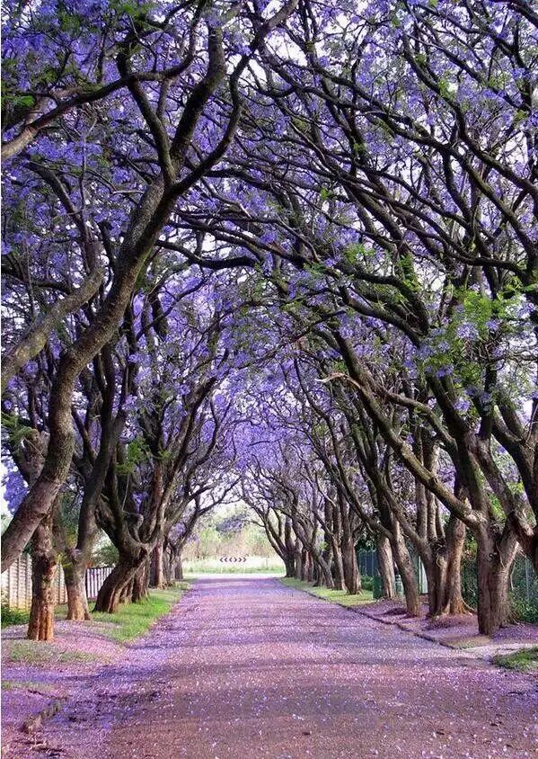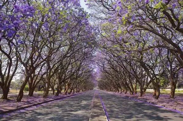比勒陀利亚栽种着7万多棵蓝花楹,也被称之为“蓝花楹之城”。花儿朵朵开时,蓝花楹为这座美丽的城市画上一笔迷人的紫蓝色,让人流连忘返。路边有总统府和各国使领馆,是南非著名的景观街道。宽阔的街道两边是挺拔婆娑的蓝花楹,每到春天,街道两边就变成了花的海洋。
